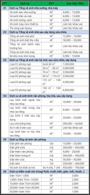 BẢNG GIÁ CHI TIẾT CÁC DỊCH VỤ VỆ SINH CÔNG NGHIỆP CỦA GSC