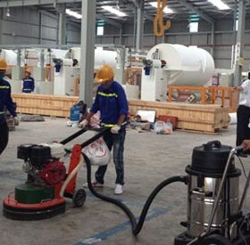 - Chà sạch sàn công nghiệp bằng máy đánh sàn